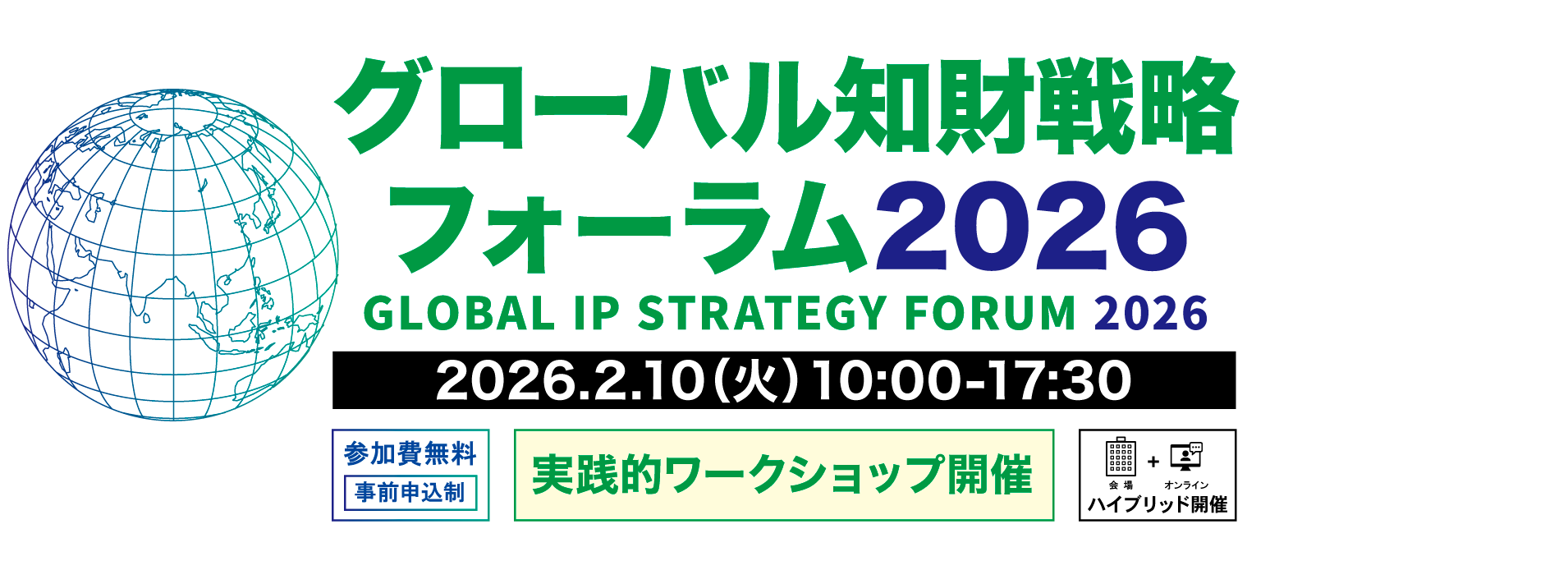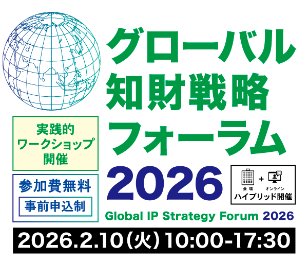 グローバル知財戦略フォーラムのプログラム詳細につきましては、「プログラム」ページにて随時ご案内いたします。